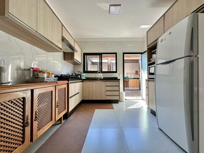 – Edícula contendo: churrasqueira, forno à lenha, bancada com armário e área de serviço;